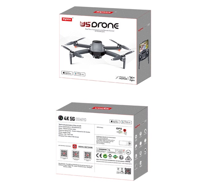 SYMA W5 از پهپادهای تاشو است و بازوهای آن خیلی راحت باز و بسته میشود. این نحوه از طراحی به حمل راحت هلی شات و استفاده از آن در موقعیتهای مختلف کمک زیادی کرده است. ابعاد کوادکوپتر در حالت عادی (باز) معادل با 30X26.5X6.5 سانتی متر است.